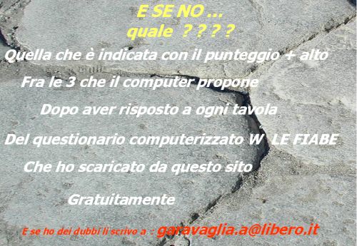RELATIVO PUNTEGGIO : QUELLA CHE HA PIU' PUNTEGGIO E' LA FIABA GIUSTA DA