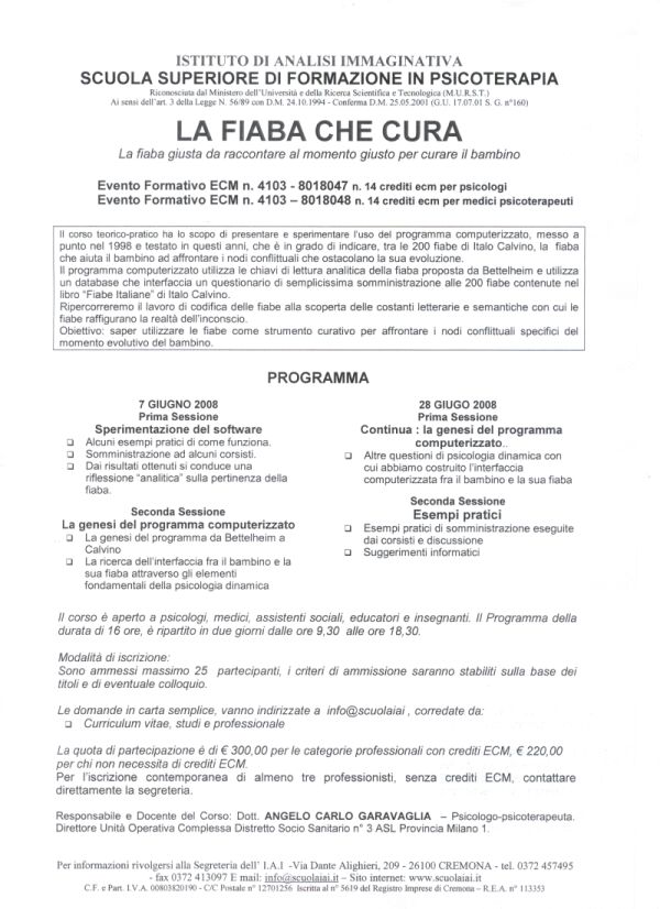 PROGRAMMA CORSO ECM "LA FIABA CHE CURA" - CREMONA GIUGNO 2008